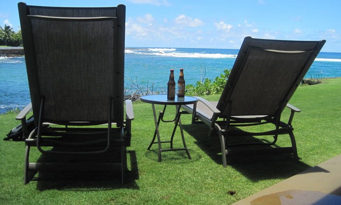 Why settle for less than direct access to the beach? From the upper floors, beach access is through the elevators then through the parking lot... while we have direct ocean access from one of the largest lanai's at Kuhio Shores.... where you can spread-out onto the immaculately kept lawn extending towards the ocean and enjoy unconfined ocean access. Where else are you going to find the ocean at such a great price with all the comforts of home?