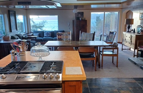 This home is a beloved waterfront getaway at the end of a private lane with access to a secluded lovely cove beach. The setting is absolutely gorgeous with dynamic dramatic Pacific Northwest waterfront views. It is surrounded by water, islands, mountains, and abundant wildlife. Casual and comfortable with a Pacific Northwest feel, it's decorated with Pendleton blankets and regional art. The well equipped kitchen includes a cuisinart, kitchenaid mixer, cast iron and caphelon pots and pans.