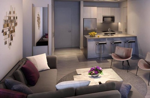 The excitement of Manhattan is beautifully expressed at Solari, beginning with soaring 10'-12' ceilings, spectacular city views, and rich engineered wood floors from Spain. Kitchens offer custom Italian Stevali cabinetry with soft-close technology, imported Italian tiling, Caesarstone countertops, and stainless steel appliances. Pampered master baths also invite with high-level finishes, including imported Italian tiling, custom Italian vanities with Caesarstone tops, Grohe fixtures, and Kohler tubs. Lush amenities are Solari's hallmark. Begin every day with laps in the 40' indoor pool, a Life Fitness Health Club workout, or a deep stretch in the yoga studio. Hold business meetings in the conference room without ever leaving home, or work on your swing with the golf simulator.