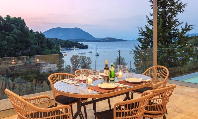 Spilia View is a luxurious single-story villa with impressive design and a prime location above Spilia Bay. The open-plan living area and two en-suite bedrooms boast breathtaking views of Skorpios Island and the Lefkada mountains. A panoramic terrace and a roof terrace offer more opportunities to soak up the stunning Ionian views. An infinity pool is the perfect place to relax, and the villa is steps away from Spilia Beach. Explore Meganissi's coastline or hire a boat to discover hidden coves. Spartochori village is a peaceful night out option and Vathy has sophisticated bars and restaurants. Please note: this villa is not suitable for those with mobility issues or children under ten as access requires 116 steps and there are drops in the garden. Smoking - not allowed. Extra: AIR CONDITIONING Free of charge , BARBECUE Free of charge , CRIB Free of charge (upon request), ELECTRICITY Free of charge , LINEN AND TOWELS Free of charge , PRIVATE CAR PARK Free of charge , PRIVATE SWIMMING POOL Free of charge , WASHING MACHINE Free of charge