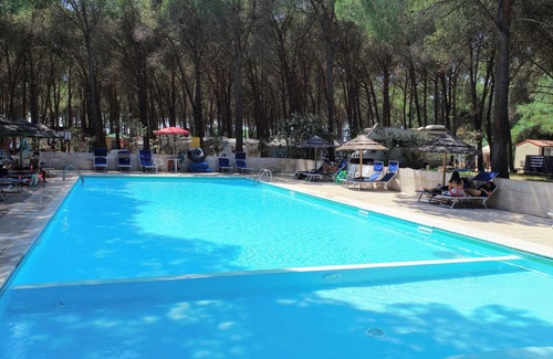 A private beach and an outdoor tennis court are featured at the campground. A children's pool and a seasonal outdoor pool are on site.