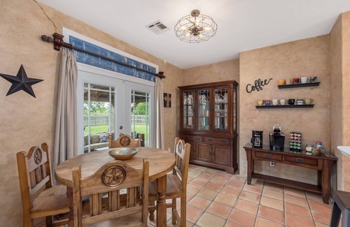 Gorgeous fully remodeled 4 bedroom 2 bath home w/ tons of space to spread out with the family or your group. Elegant oversized oak front door opens into large living space w/ 65" flat screen and soaring ceilings and plenty of room to spread out. Primary Bedroom is a true presidential suite with a solid wood King Bed w/ memory foam mattress, it's own ensuite bathroom complete with frameless glass shower with 2 heads and separate copper soaker tub. Master also features addition with leather futon, sheets/comforter for extra guests & antique desk for a space to work. 2 other bedrooms downstairs offer "themed" chic styling patterned after the "A" and "M" of the University for a truly unique experience we think you'll love. 4th bedroom upstairs is also a playroom (equipped with XBOX ONE, XBOX Games, kid movies, game table w/ games) and has a full sized bed with pillow top, Full sized futon and 2 single roll away beds great for the kids. Hall bath has custom built in antique vanity and soaker tub/shower combo. The Kitchen is fully stocked for you and has brand new stainless appliances including a gas range, designer dishwasher, & bar with bar stools. Dining Room is a true work of art with soaring ceilings, solid wood designer table/chairs and lots of natural light. Separate Dining area in kitchen as well for additional seating. Head outside into your huge 1/4 acre back yard space with a 300 sqft covered patio, grill, outdoor 60" sunbright TV, and cooler. Let the kids play catch in the yard, while you grill and watch the big game outside. We are right across the street from a huge park and the new “ Big Shots Golf” entertainment venue (like Top Golf). Step into the garage where we have a full sized ping pong table, heavy duty foosball table, Cornhole, ring game, mounted dart board & outdoor fridge for extra drinks & food. Also have a table & chairs in the garage for extra dining entertainment space. House is on a large nearly 1/2 acre lot close to Kyle Field and campus (approx 1 mile away). Owners are responsive experienced rental property managers and are ready to assist with any questions or issues that may come up. Our properties have even been featured on HGTV and we were voted the #1 Gameday house in Aggieland by Expedia! We hope you'll stay with us at Sprit of Aggieland!