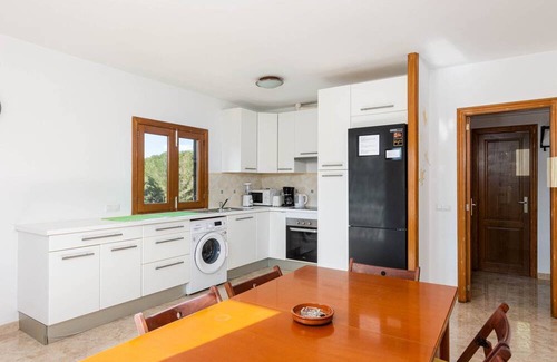 This fully equipped tourist apartment in Cala Mesquida, eastern Mallorca, offers the perfect base for a beach holiday with access to a communal pool. Ideal for up to 4 guests, the apartment is just a short walk from the beautiful sandy cove of Cala Mesquida, where you can enjoy sunbeds, umbrellas, and a beach bar during the season. In winter, the area is perfect for hiking, with nearby excursions in the Llevant mountains. Additional dream beaches, including Cala Torta and Cala Agulla, are easily accessible by car. Cala Ratjada, just 10 minutes away, offers a variety of supermarkets, restaurants, and leisure activities. A car is recommended. The generous 60 m2 communal pool is the ideal spot to cool off and enjoy the warm Mediterranean climate. With chlorinated water and a depth of 1 to 3.5 meters, it is suitable for both adults and children. The sunbeds around the pool provide a perfect space for relaxation after exploring the island. Inside, the apartment features a bright living-dining room with satellite TV and Wi-Fi, ensuring comfort and entertainment. The fully equipped kitchen offers ceramic hobs, a coffee maker, and a filter coffee machine. Two double bedrooms, air conditioning, and a private terrace with stunning views of the Mediterranean complete the experience. Additional amenities include a washing machine, iron, and a cot/high chair on request. Please note that Ecotasa and ID registration are required.