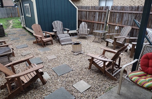 Sports themed place to stay. Don't get board at those others places. We have pool, video games, darts, pickleball, volleyball and many more games to keep you busy. If games are not your thing, just relax in our backyard with hammocks, lawn chairs and fire pits or stay inside and watch free internet TV. We have something for everyone. We have cameras outside for your security and are available 24/7 to take your calls if you need anything.