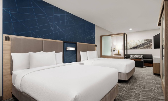 Springhill Suites By Marriott Fargo offers 128 accommodations with coffee/tea makers and hair dryers. Accommodations offer separate sitting areas and include day beds. Beds feature down comforters. A pillow menu is available. 50-inch Smart televisions come with cable channels. Bathrooms include bathtubs or showers and complimentary toiletries.