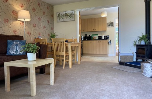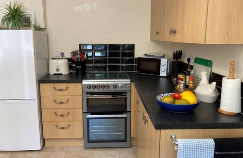 The kitchen is well equipped with cooker, dishwasher, fridge freezer and washing machine The sitting room has a dining table to seat four, a large sofa and a cosy log burning stove. A single sofa bed is available for a third person staying if required. Externally you have a spacious driveway with parking available right outside your front door, whilst to the rear you have a private decking area with bike shed.