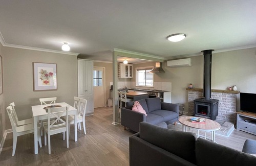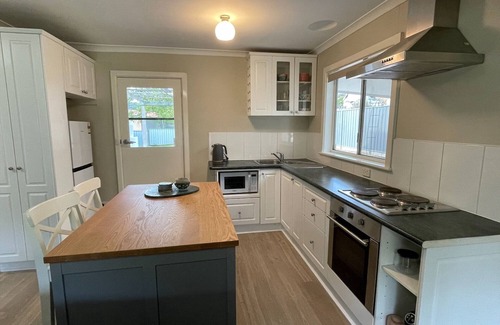 The new kitchen is fully functional, stocked with coffee pod machine, microwave, cooking utensils and crockery, cutlery and glassware. The open-plan dining and living room is spacious and perfect for gathering around the extendable dining table, or in the comfort of the large cosy lounges surrounding the fireplace. The house can accommodate up to 7 guests. The first two bedrooms have queen size beds whilst the next bedroom has 2 single beds and a trundle bed. Each of the rooms have ceiling fans. The bathroom has a full size bath and separate shower. Just outside the back door is the laundry which consists of a washing machine, clothes airer, iron and ironing board. St Albert House is your home away from home for either a week or a weekend, the choice is yours.