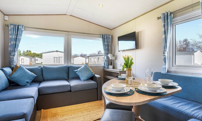 Shower Room: Cubicle Shower, Toilet. LPG central heating, electricity, bed linen, towels and Wi-Fi included. Travel cot available on request. Indoor heated swimming pool (shared with other properties on-site) with shower and changing facilities. Public car park, free of charge. No smoking. . The St Andrews holiday home at Seaton Sands resort offers a perfect blend of comfort and adventure. With Longniddry beach’s soft sands as a backdrop, guests can enjoy a variety of activities, from the thrill of a bungee trampoline to the precision of archery coaching.