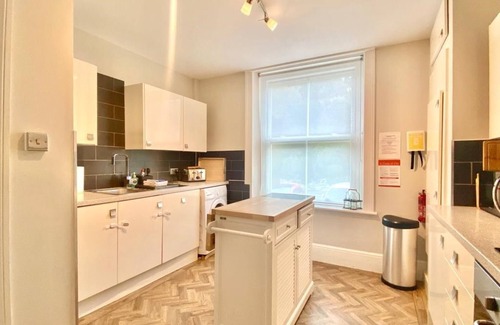 Enter into the communal entrance hall and head up two flights of stairs where you will be welcomed into this spacious first floor apartment with three bedrooms and two bathrooms, one of which is an en-suite shower room. The apartment is beautifully decorated throughout with a contemporary and stylish flair, with high ceilings, large windows and breath-taking sea views from both the sitting room and bedroom one. The sitting room enjoys large, dual aspect bay windows where the dining table is ideally placed for taking in those beautiful views out to sea and to St Catherine's Lighthouse, and provide front row seats for some magnificent sun sets. With views overlooking the downs, the modern and well-equipped kitchen is perfect for whipping up some special meals using local fresh island produce available from the village shop, a five minute drive away.