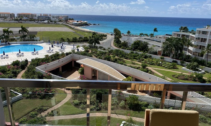 Our newly renovated condo is located on the beautiful and amazing island of St. Maarten. The condo with incredible ocean and beach views, is on the 5th Floor of the totally renovated La Terrasse Building in Maho Village. It is perfectly located with the exciting Casino Royale next door, 2 beaches and 2 beach bars across the street, and the world famous Princess Juliana Airport where you can watch the planes approaching to land. There are also many restaurants, shops, lounges and boutiques right there as well.