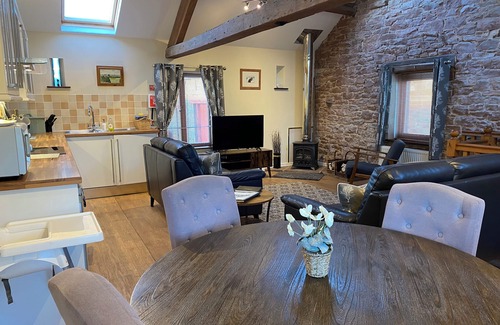 Amenities: Biomass central heating with woodburning stove. Electric oven and hob, microwave, fridge, washing machine, tumble dryer, dishwasher, TV with Sky, DVD, CD, WiFi. Fuel, power and fuel for stove inc. in rent. Bed linen and towels inc. in rent. Travel cot and highchair on request. Ample off road parking. Bike storage. Private patio with furniture and shared use of extensive lawn and outdoor play area. Sorry, no pets or smoking. Farm shop selling vegetables on site. Shop 3 miles, pub 1.5 miles.