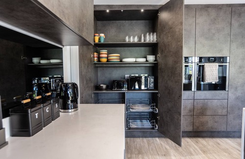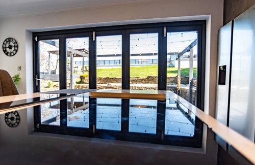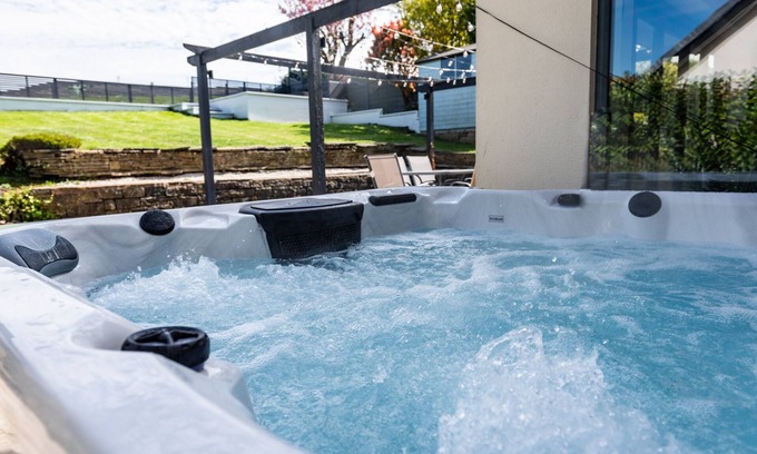 Our Stalybridge Sanctuary | Luxe Hot Tub Retreat is a stunning countryside haven, designed for relaxation and luxury. Sleeping up to 12 guests, it features a private hot tub and breathtaking views of the surrounding landscapes.