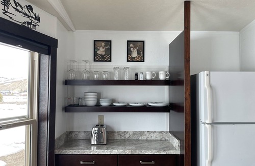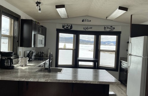 Clean and Cozy newly renovated manufactured home on a private view lot. Home is located at the end of a dead end street with stunning panoramic views of the Sawtooth Mountains and Meadow. The 728 sq ft home is set up for two guests only (including children) and includes a full kitchen and a washer and dryer. Close enough to walk to downtown Stanley (10 minutes) and only an 8 mile drive to Redfish or Stanley Lake.