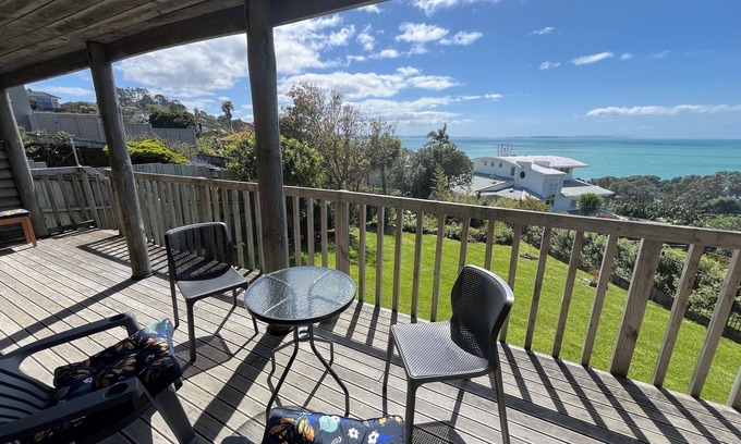 Enjoy this unique 70’s log cabin. The deck provides a perfect spot for looking out to sea and listening to the Tuis. It's a great place to relax, re-charge or enjoy a family holiday on the Hibiscus Coast.