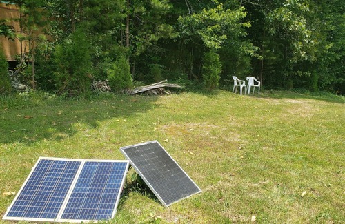 Hooked up with a complete Solar system including lights and multiple Fans plus USB charging ports With the clear roof it does get hot inside during the day but an exhaust fan cools it down at night. Come enjoy the Private Forest and relax in an immersive forest experience like no other.