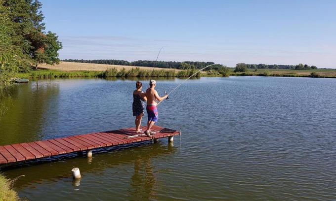 Providing a garden, Stawy u Sikory - Dom Rybak - Agroturystyka i łowisko features accommodations in Nowa Wieś. This property offers access to a terrace, free private parking, and free Wifi. The Monument of Jesus is 29 miles away and City Art Centre is 29 miles from the vacation home. The air-conditioned vacation home consists of 3 bedrooms, a living room, a fully equipped kitchen with a dishwasher and a coffee machine, and 1 bathroom with a walk-in shower and a hair dryer. Guests can take in the views of the lake from the balcony, which also has outdoor furniture. There's also a seating area and a fireplace. Guests can make the most of the warm weather with the property's barbecue facilities. For guests with children, the vacation home provides a baby safety gate. Guests can also warm up near the outdoor fireplace after a day of cycling. Zielona Góra Airport is 49 miles away.