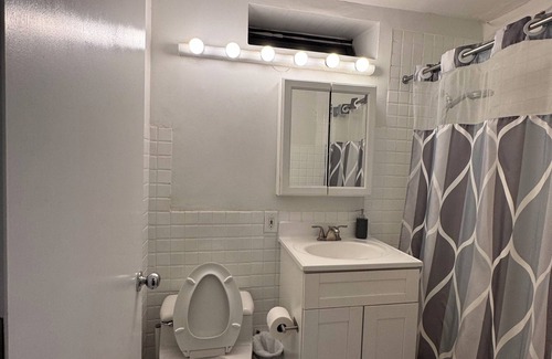 Unwind in the bustling city of New York at this terrific apartment. This cozy space features 2 bedrooms with a queen bed and a twin bed, perfect for small groups or families. The bathroom comes equipped with a bathtub and a hairdryer for your convenience. Kickback, relax, and enjoy everything New York and our apartment has to offer.