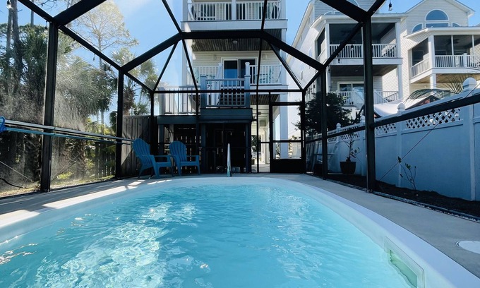 Our beautiful 3 bed/3 bath bay front home with a private pool is located right in the heart of SGI. You can easily walk to one of 2 beach access areas within 5 minutes. Beach access is on the boardwalk behind the lighthouse or down the 3rd Street boardwalk, which is our favorite. Make unforgettable memories kayaking on the bay behind the house with the family. While we do not have direct bay access, put-in for kayaks is right next door at Journeys or just around the corner by the boat ramp at the bridge. We do offer 2 kayak transport carts that can assist you in transporting the kayaks to the bay next door at Journeys. Launching at the bridge will require that you have a vehicle to transport the kayaks in. You can also rent additional kayaks at Journeys if needed.