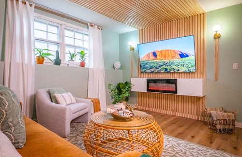 Experience mid-century modern style and Bauhaus elegance in the heart of Lawrence. Reserve The Bauhaus Retreat now and enjoy a stylish, comfortable, and convenient home away from home.