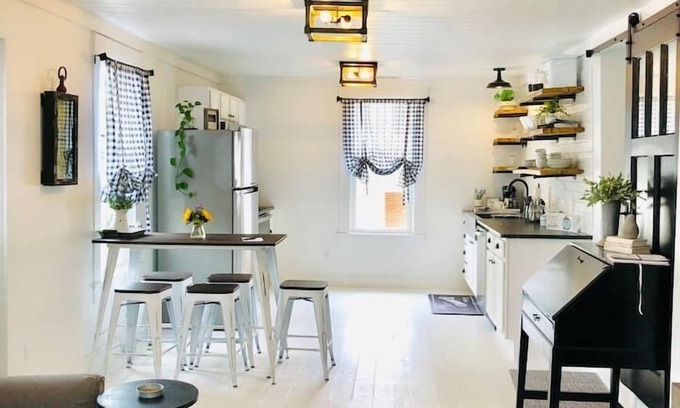 This inviting space is located on the second floor in the heart of historic Springboro. It has a fully equipped, modern farmhouse-style kitchen for cozy dinners at home. The kitchen has all new appliances and a giant farmhouse sink.