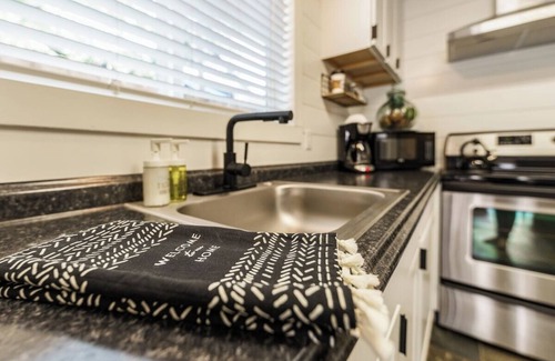Fully stocked kitchen where you will find everything you need to feel at home, and prepare a delicious home cooked meal. Full size stainless appliances including refrigerator, stove & oven, dishwasher, microwave, coffee maker. Plenty of spices, Utensils and cookware make eating in simple and efficient. Complete with a dining table with seating for 4.