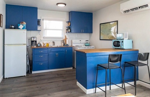 Fully stocked kitchen makes cooking from home convenient and efficient. Updated with full size appliances including refrigerator, stove, oven, microwave, & coffee maker. Plenty of utensils and cookware make eating in simple. Seating for (2) in the kitchen.