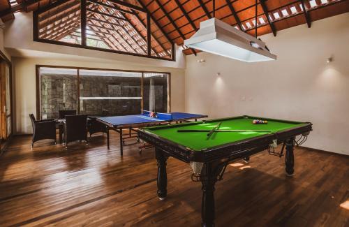 10 miles from Madikeri Fort in Madikeri, StayVista at Acacia Villa One - Free Breakfast, Pool, Gym & Indoor Games offers accommodations with access to a fitness room. All guests of the property enjoy access to an outdoor fireplace and an outdoor pool. There's free private parking, and the property features paid airport shuttle service. The villa provides guests with a balcony, pool views, a seating area, a flat-screen TV, a fully equipped kitchen with an oven and a microwave, and a private bathroom with shower and free toiletries. At the villa complex, all units are soundproof. At the villa complex, units have bed linen and towels. Guests are welcome to eat at the on-site family-friendly restaurant, which is open for dinner, lunch, brunch, and high tea. The area is popular for cycling and walking tours. In addition, car rental and free use of bicycles are available at this villa. An indoor play area is also available at StayVista at Acacia Villa One - Free Breakfast, Pool, Gym & Indoor Games, while guests can also relax in the garden. Raja Seat is 10 miles from the accommodation, while Abbi Falls is 12 miles from the property. The nearest airport is Kannur International Airport, 65 miles from StayVista at Acacia Villa One - Free Breakfast, Pool, Gym & Indoor Games.