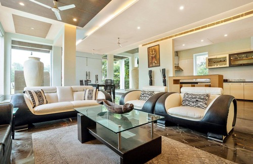 Exuding an olden charisma, this holiday home promises to teleport you to the yesteryears. Right from the furnishings to its structure, the spectrum of amenities available will leave you spoilt for choice. Days here begin with a leisurely stroll in the gardens, as you soak in the sun. Devour a sumptuous breakfast. As the day progresses, make sure to spend quality time with your loved ones and play indoor games like cards and ludo. Come evening, the private swimming pool awaits your arrival. End the day with a day elaborate barbecue spread best relished around the bonfire. Grab a book to read and enjoy in the midst of unending peace.