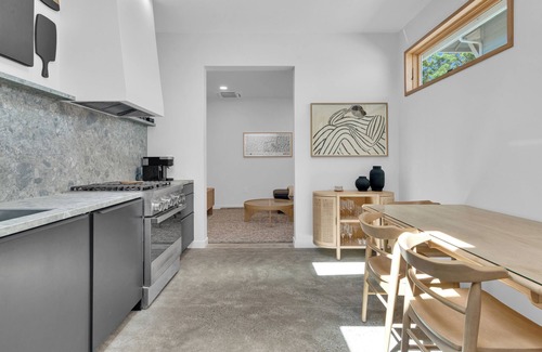 Vacation in "stealth mode" by staying in this quiet retreat just 5 blocks from the downtown square. A long private pathway leads to this hidden gem, featuring one queen bedroom and one full bath. Prepare your meals in the modern, fully-stocked kitchen with brand new Jennair range. Cozy living room with a 55" smart TV. Perfect spot for anyone who wants to spend the days exploring all that Paso has to offer!