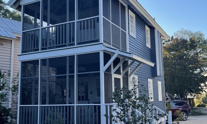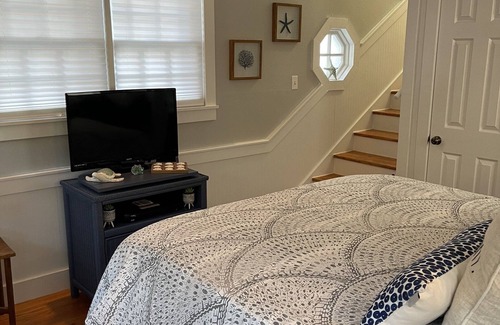 This cottage is a one bedroom one bath free standing cottage. Downstairs is a queen bed and bathroom. Upstairs is a kitchenette, living room and screened porch. Additional bedding is one queen air mattress. This cottage features free wireless internet and Dish satellite. No pets. No smoking.