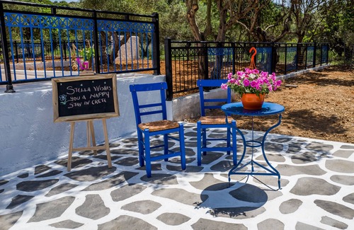 The Stella apartment is located in an olive grove in our Villa Varvara and just a five minute walk from the beautiful sandy beach and the center of the village called Almyrida, where you will find a variety of small family owned shops that meet your daily needs. From small taverns, sophisticated coffee shops, small grocery stores, local butchers, hairdressing salons, bowling, water sports and other activities, this small seaside village is ideal for anyone who wants to experience the Cretan lifestyle.