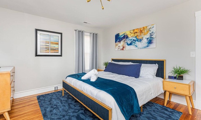 Welcome to 'Blue Suede Shoes' RVA Retreat! Our stylish 3-bedroom apartment in Richmond, VA offers 4 comfy beds & 2 full baths, ideal for families or friends. Enjoy neighborhood views from the private balcony, unwind with flat-screen TVs paired with Rokus, & stay productive at our dedicated desk. Convenient parking makes exploring easy. Cook in the fully-equipped kitchen or dine out nearby. Whether for business or pleasure, make memories at our Blue Suede Haven. Book now for an unforgettable stay!