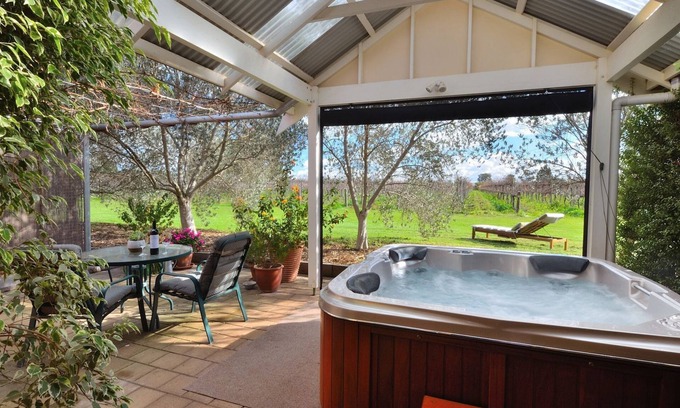 You can enjoy the Barossa with its many wineries, restaurants, antique shops and other attractions which are just minutes away. Back at the Cottage relax with a glass of wine on the cosy veranda while you watch the sun set over the vines. You can also enjoy a revitalising hydrotherapy massage in the beautiful heated outdoor spa provided exclusively for you. There is also a large lawn area with Badminton court for you to use.