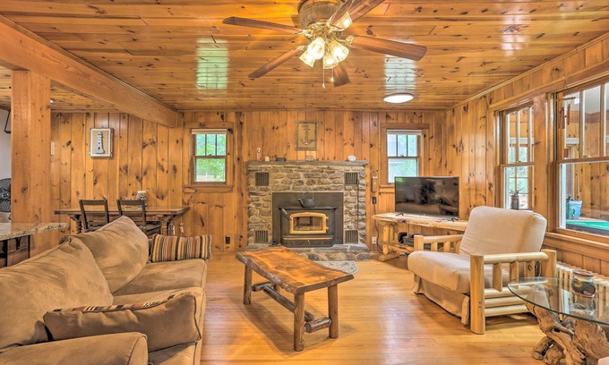 Looking for the perfect hideaway to call home as you explore the endless wonders of the Pocono Mountains? Look no further than this Tafton cottage, a 3-bedroom, 2-bathroom vacation rental designed with the family's comfort in mind. Situated just steps from Lake Wallenpaupack, this abode ensures outdoor recreation comes easily. Spend the day on a scenic boat tour, visit Promised Land State Park, or stay home for a game of ping pong with the kids followed by a picnic in the spacious backyard!