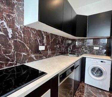 Food & DrinkBottle of water, MinibarBathroomPrivate bathroom, Shower, Toilet paper, Shampoo, Toilet, Bathtub or shower, Conditioner, Body soapMedia & TechnologyFlat-screen TV, Streaming service (like Netflix), TVOutdoorsTerrace, Balcony, Outdoor furnitureKitchenKitchen, Washing machine, Toaster, Refrigerator, Dishwasher, Electric kettle, Kitchenware, Microwave, Dining table, Oven, Stovetop, Wine glassesGeneralHeating, Private entranceLiving AreaDining area, SofaBedroomWardrobe or closetBuilding CharacteristicsPrivate apartment in buildingRoom AmenitiesSocket near the bed, Clothes rack, Sofa bed |