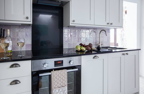 Lavender is a two bedroom stone built cottage with a modern open plan living space, that sleeps 4 plus cot. Both bedrooms have en-suite bathrooms one with a bath over shower and one with a walk in shower. The open living area has a fully equipped kitchen with a large fridge/freezer, dishwasher, microwave, ceramic hob and fan assisted oven. The high quality shaker style kitchen has solid oak doors finished in porcelain white with black quartz worktop. The open plan living area also has a large six seater teal corner sofa, a 4 seat dining table and a wall mounted 49" 4K UHD Smart TV. One of the bedrooms is a king sized double the other has twin singles that can be made up as a super king sized double upon request. Fresh crisp white linen, 2 fluffy towels per person, oil fired central heating, electricity, and wi-fi is all provided free of charge. A wide range of baby friendly equipment can be supplied on request.