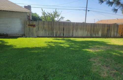 This adorable bungalow in Clovis is the perfect spot for guests looking for a cozy private retreat. This charming property offers an eclectic artsy very comfortable feel to it. Watch rabbits graze on the lawn in the evening, sit under the trees with the resident hen shopping for bugs. Pull into the yard and park near the Stone Hearth Cottage sign on entry gate and follow path to door.