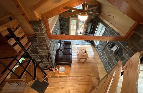 The Stonehouse is a unique modern build with traditional masonry. Located on a 6-acre garden with flowers, shrubs, fruit trees and vegetables. 100 different species of birds have been spotted here. Moose and beavers frequent the area.
