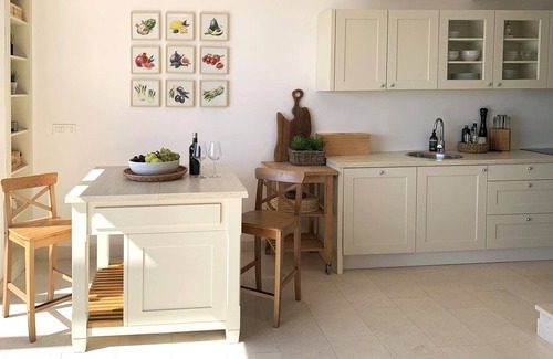 It is set up on 3 floors connected by internal staircases, and it consists of kitchen with dining and living room, storage room with fridge and wine cellar, 3 double bedrooms, 1 bedroom with single from which additional bed may be pulled out, 2 bathrooms with shower, and one additional toilet.