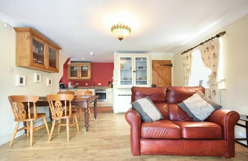 Lounge with comfy seating, multi-fuel stove, TV and DVD and a selection of books; access to the conservatory and secluded garden.
