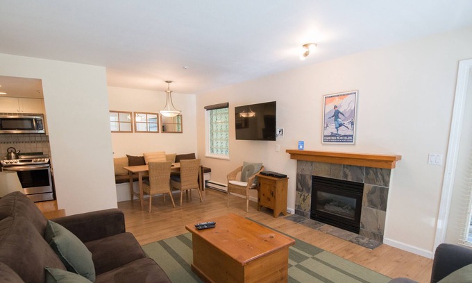 Stoney Creek Northstar #74 is an updated ground floor 1 bedroom property and is situated in a quiet building at the rear of the complex. This property is handicap accessible with no stairs and a roll-in shower. This open plan, 650 square foot condo also features a gas fireplace, ground floor patio with chairs, fully equipped kitchen with dishwasher and microwave, washer/dryer and a new flat-screen television and DVD player. The bedding in this specific Stoney Creek unit is a Queen in the master bedroom and a pullout sofabed in the living area. Stoney Creek Northstar also offers all guests free secure underground parking and a great year-round pool and hot tub area.