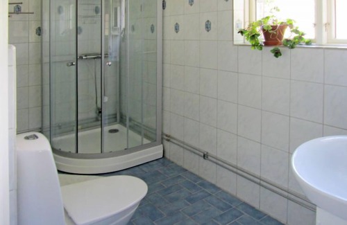"Stora Gryten", 4-room house 145 m2 on 2 levels. Cosy furnishings: living/dining room with Scandinavian wood stove, dining table, satellite TV, CD-player and DVD. Exit to the veranda. Open kitchen (oven, dishwasher, 4 ceramic glass hob hotplates, microwave, freezer, electric coffee machine) with open-hearth fireplace (only for decoration). Shower/WC. Upper floor: living/sleeping room with sloping ceilings with 1 double sofabed and Scandinavian wood stove. 1 room with sloping ceilings with 1 double bed. 1 room with sloping ceilings with 2 beds. Shower/WC. Heating. Wooden floors. View of the lake. Facilities: washing machine, children's high chair, baby cot. Please note: non-smoking house. Smoke alarm, fire extinguisher. Freezer approx. 60 l.