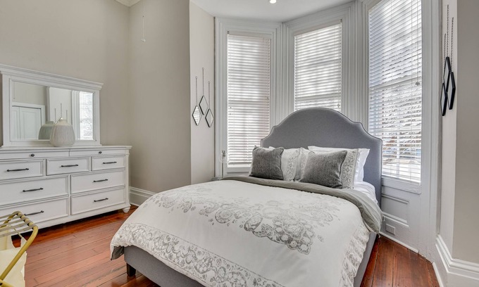 The historic Stovall-Barnes House is a short walk from the Savannah River, the medical district, the Cyber Center, and many of the city's most dynamic entertainment venues, restaurants, and museums. This charming home retained some of the original wood floors, mantels, windows, and moldings and boasts 12' ceilings. The new modern kitchen includes granite countertops and stainless steel appliances. Includes stackable w/d, smart TVs, wifi, plush linens, and gated off-street parking. When you enter the gated parking area in the back of the home, you will see a beautiful outdoor common space that has a masonry fireplace, a gas grill and a covered seating area. When you enter the back door of the building, you come into a grand common foyer with a beautiful, original staircase. The foyer gives way to 4 individual private apartment units that are completely separated from each other. Each unit hosts it's own living space, kitchen and bedroom(s) and bathroom(s). This unit is in a building with other VRBO listings. If you are in search of a place to house a large group for a wedding, girls weekend, family reunion or business function, this is an excellent choice. Each unit, however, is it's own separate apartment that is completely private from the other units. Message us for more details and receive the link to book directly.