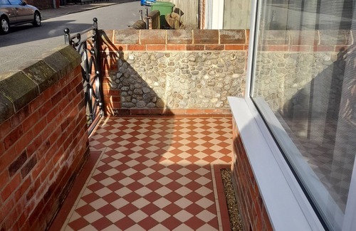 Strand Cottage is a charming, mid-terraced, brick and flint cottage. Boasting period features throughout this house, offers modern living and provides the ideal location for the perfect holiday in Sheringham, wander along the Coastal Path, build sandcastles on the beach, stroll along the Promenade, or enjoy a relaxing coffee in a local café!Ground Floor, with step leading to front door leading into the Sitting room: with bay window, comfortable sofa and arm chair, Smart TV and DVD player and stairs. Door to Dining Room: with dining table and four chairs, leading into Kitchen: microwave, induction hob and electric oven, fridge/freezer and back door leading to small, fenced patio garden with sitting area. Outside Utility room: with washer/dryer and drying space. Staircase leading to first floor small landing with small step up to comfortable Principal bedroom with king sized bed and wardrobe. Step up to door to: small Double bedroom with 4ft 6” double bed. Step up with Door to Family bathroom: bath with shower over, WC and washbasin.