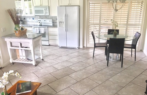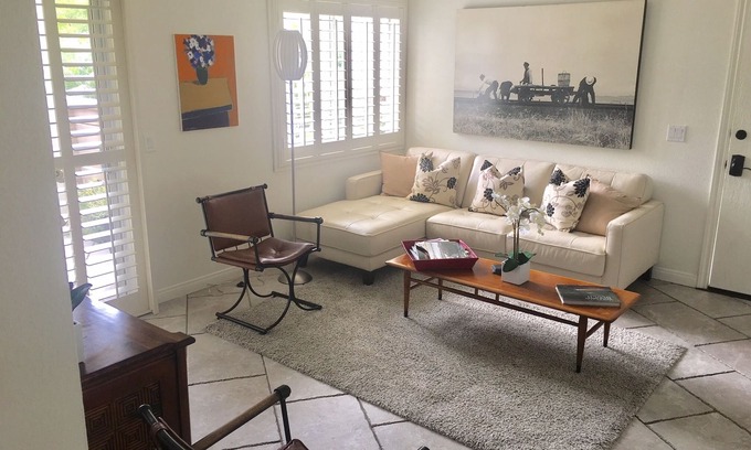 NEWLY APPOINTED UNIT: Recently completely refurbished and updated, our condo is fully decked out for your comfort. The kitchen is fully equipped with everything a family would need for comfort. The two private bedrooms include one large master suite which opens up to a beautiful garden patio, one of the most generous patios in the entire complex. The second bedroom has two twin beds and opens up to a patio surrounded by a small succulent garden. The floor plan is continuous throughout--from any room one can move from bedroom to patio to living room to dining room and kitchen with ease.