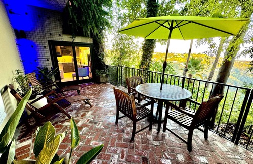 This famous '60s designer's home studio offers total privacy in a romantic perch with stunning endless views over DTLA and beyond. It’s tranquility in the midst of the metropolis, just minutes from Hollywood, WeHo, Universal Studios and Beverly Hills.