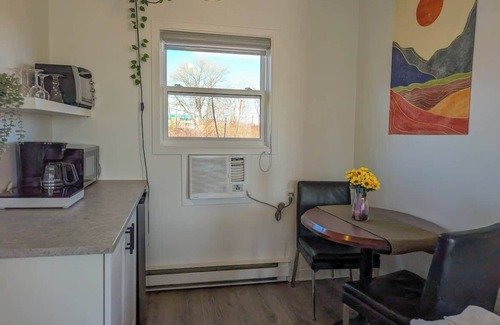 Ce charmant studio de style chambre d’hôtel, situé au rez-de-chaussée, offre un espace chaleureux et confortable. Il dispose d’une cuisinette, d’un coin travail, d’une télévision intelligente, d’une table à manger, ainsi que de deux lits queen pouvant accueillir jusqu’à 4 personnes.