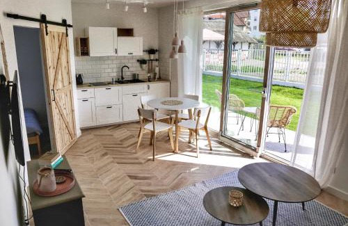Just a 12-minute walk from Wladyslawowo Beach and 0.8 miles from Cetniewo Beach, Studio 33 Władysławowo features accommodations in Władysławowo with a garden. This property offers access to a balcony, free private parking, and free Wifi. The accommodation features a 24-hour front desk and an elevator for guests. Featuring a terrace and garden views, the apartment includes 1 bedroom, a living room, satellite flat-screen TV, an equipped kitchen, and 1 bathroom with a walk-in shower. Towels and bed linen are available in the apartment. This apartment is allergy-free and non-smoking. During warmer months, you can make use of the barbecue facilities and eat on the private patio. A water park is available on-site and hiking can be enjoyed close to the apartment. Wladyslawowo 4 Beach is a 18-minute walk from Studio 33 Władysławowo, while Gdynia Harbour is 22 miles from the property. Gdańsk Lech Wałęsa Airport is 38 miles away.