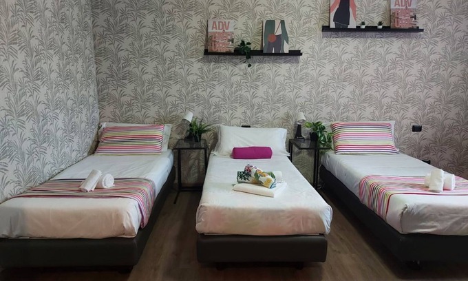 • A single open-space room with three single beds, two of which can be combined to form a double bed, ideal for groups or colleagues traveling together.