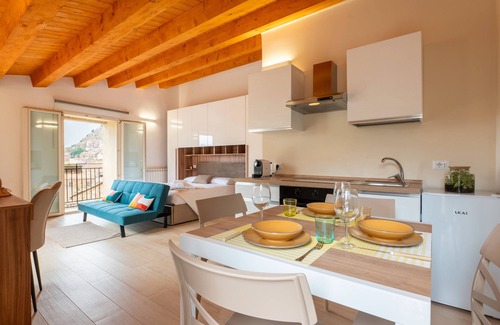 Studio 5 is located in Mistretta and offers a beautiful private terrace. Situated on the second floor, the apartment consists of a well-equipped kitchen, a double bed, a sofa bed for one person, and a bathroom, accommodating up to 3 guests. Additional amenities include high-speed Wi-Fi suitable for videoconferencing, a dedicated workspace, TV, air conditioning, washing machine, and dryer. The property also features a private outdoor area with an open terrace and balcony.